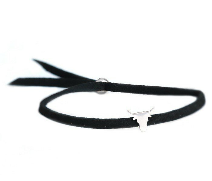 Dieses schöne schwarze Wildlederarmband hat einen kleinen versilberten Büffelanhänger. Es sieht wunderschön aus in Kombination mit anderen silbernen Armbändern oder unseren Ibiza-Haargummis!