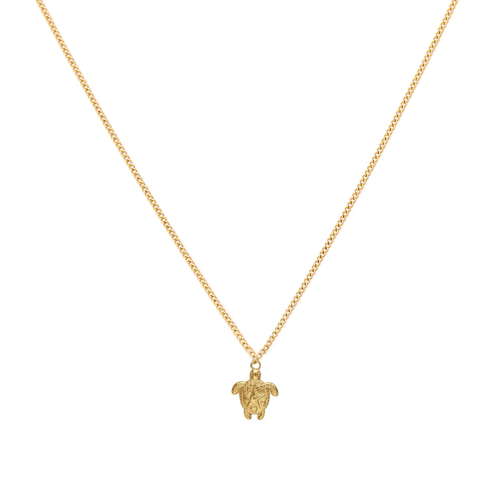 Feine Goldkette mit Schildkrötenanhänger.