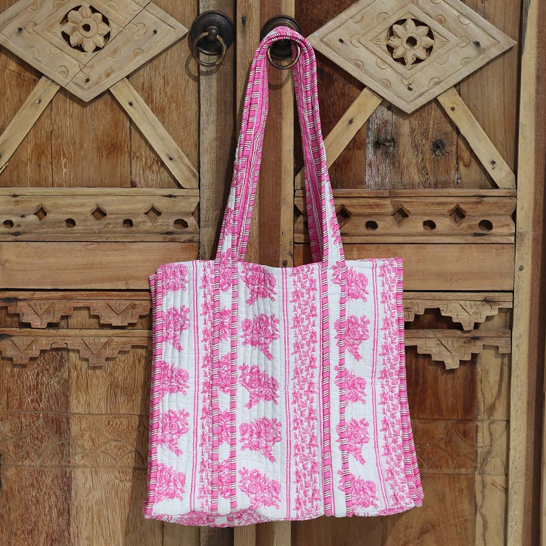Umhängetasche mit Blockdruck in rosa/weiß