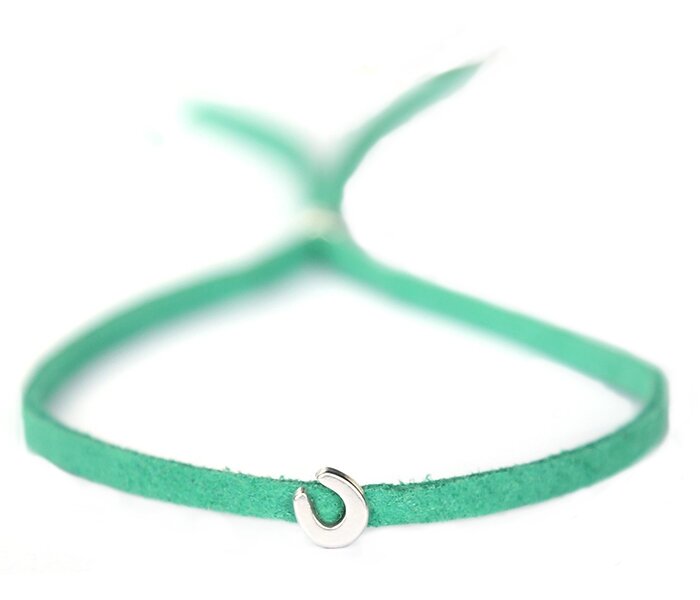 Let’s get lucky! This beautiful green suede bracelet features a small silver-plated horseshoe for GOOD LUCK!