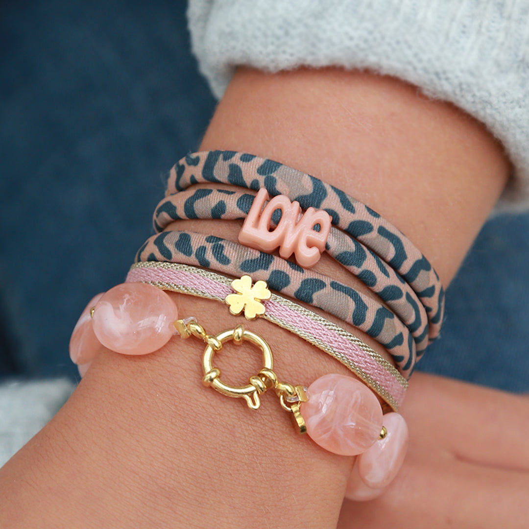 Notre bracelet/bracelet de cheville best-seller Leopard Love, le bracelet Pastille Peach et un bracelet tressé en forme de trèfle !