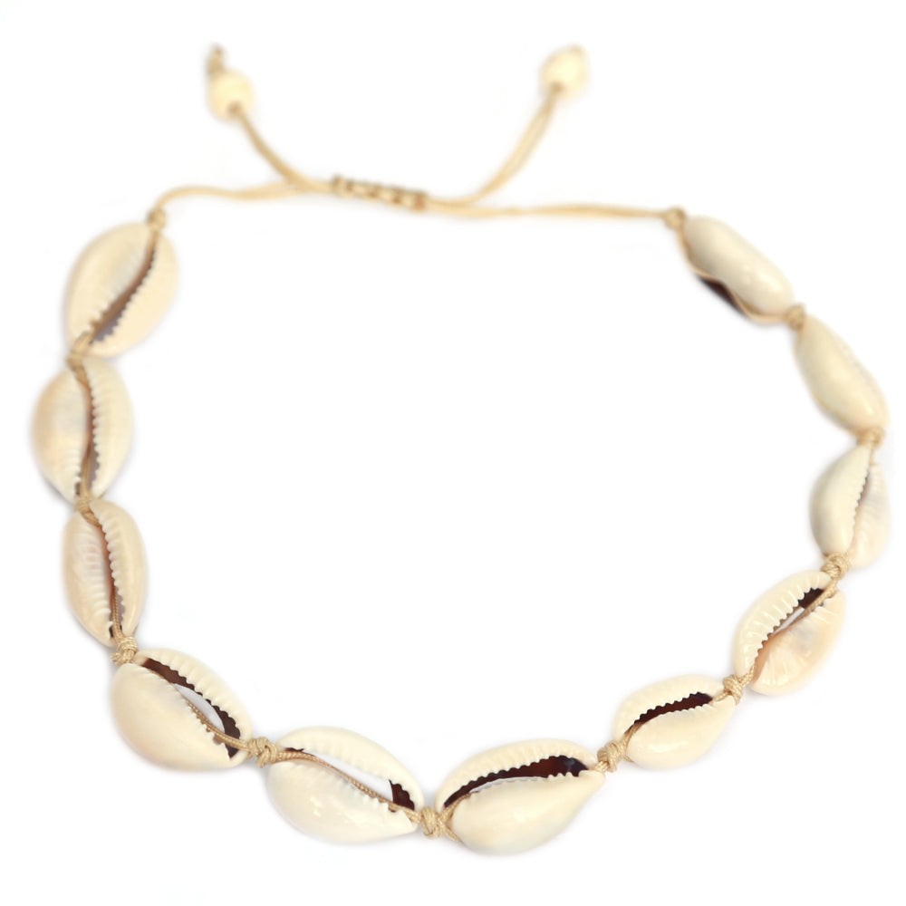 Cute anklet with cream colored shells. You can easily adjust the anklet to fit.