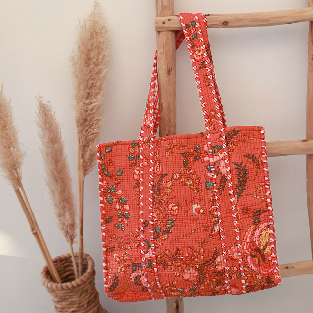 This colorful blockprint shoulder bag is made of organic cotton and also has a pocket on the inside! These bags are hand printed using traditional Indian block printing method with a paint of natural pigments.