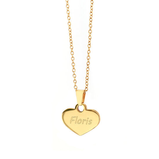 Both the chain and the charm are made of stainless steel and therefore do not discolour. However, we do not recommend showering, swimming or sleeping with the necklace.