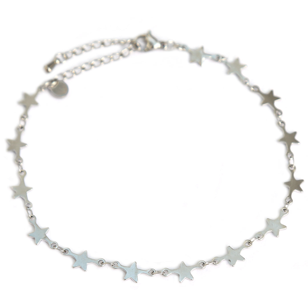 Cute silver anklet with stars. Material: stainless steel Length: 19.5 cm + a 5 cm extension chain