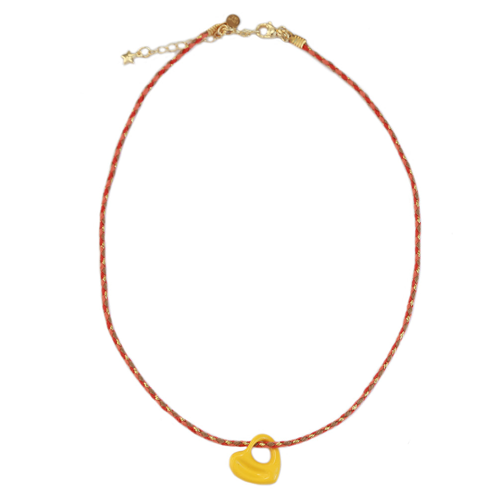 ¡Precioso collar de cordón de color otoñal con un pequeño dije de corazón amarillo!