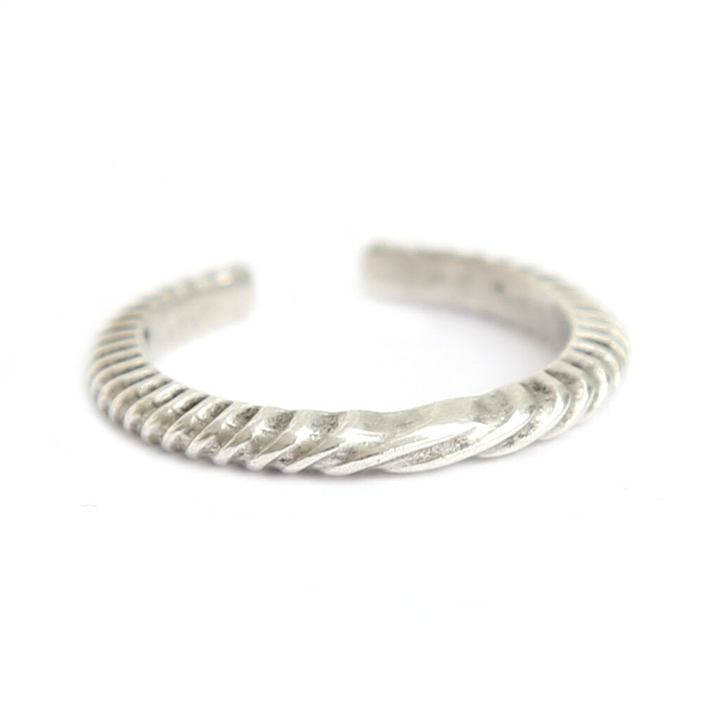 Hermoso anillo estrecho de plata con un sutil diseño.