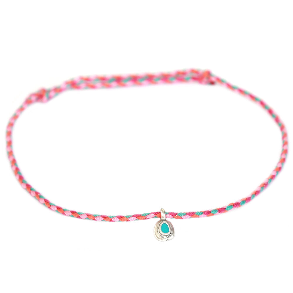Preciosa tobillera de cordón de color con un dije de plata y turquesa. Se ajusta fácilmente a...
