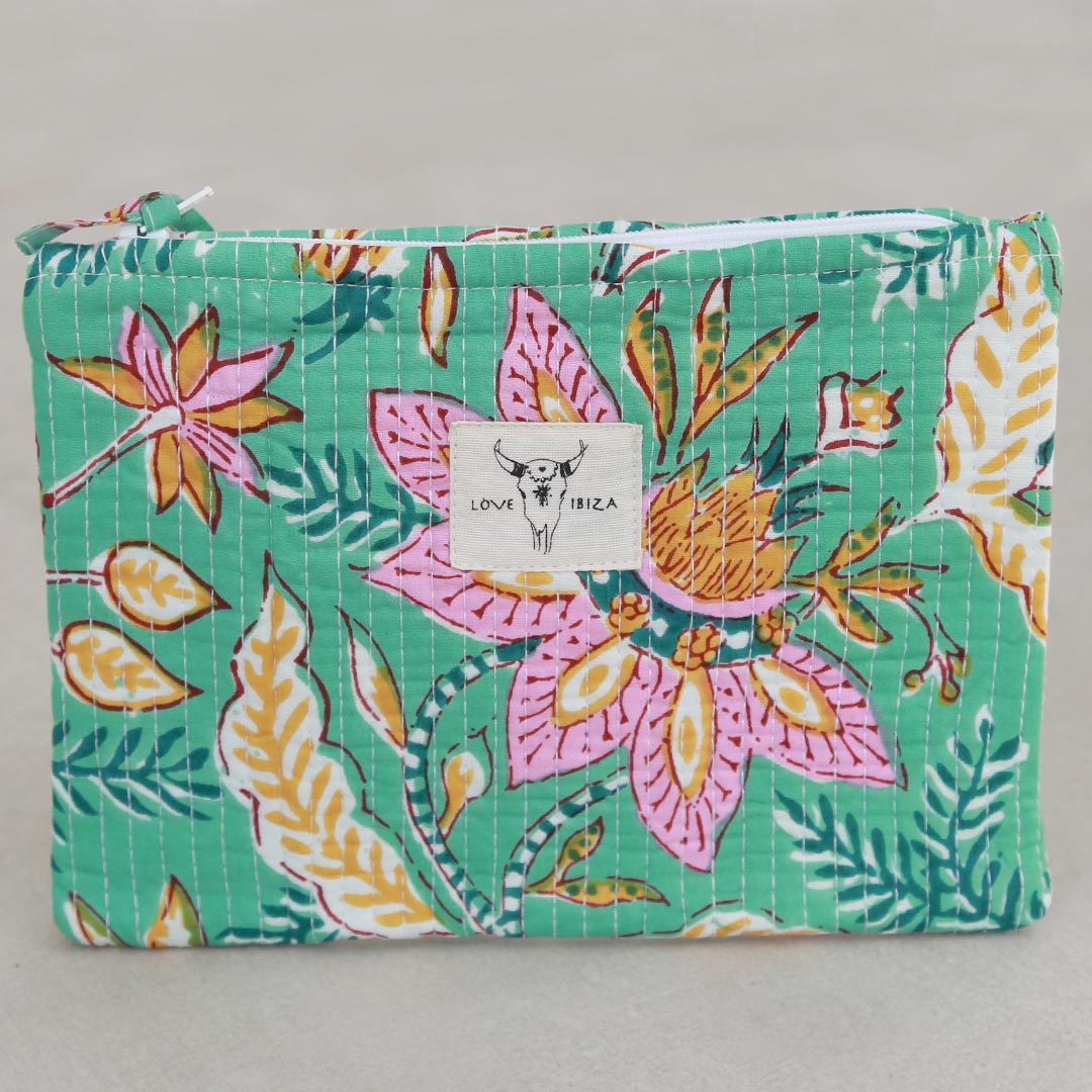 Kleurrijke blockprint make-up pouch. Super handig om te gebruiken als make-up tasje maar ook om wat kleinere spullen in te doen wanneer je een grote tas gebruikt.