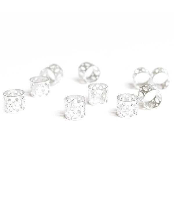 Apportez une touche d’originalité à votre tresse avec ces jolies perles argentées pour cheveux. Les perles s’ouvrent facilement et se fixent autour des mèches d’une tresse.