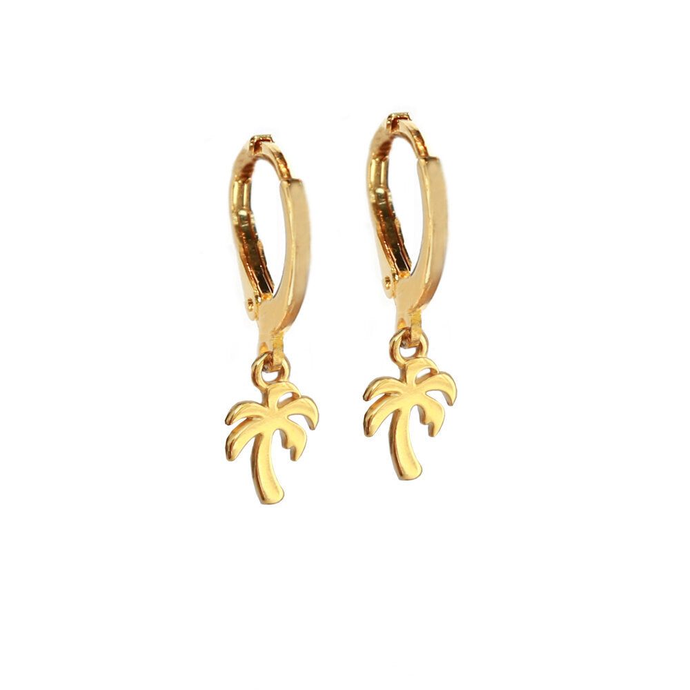 Magnifiques créoles en or avec pendentif palmier en or. Plaquées or et sans nickel.