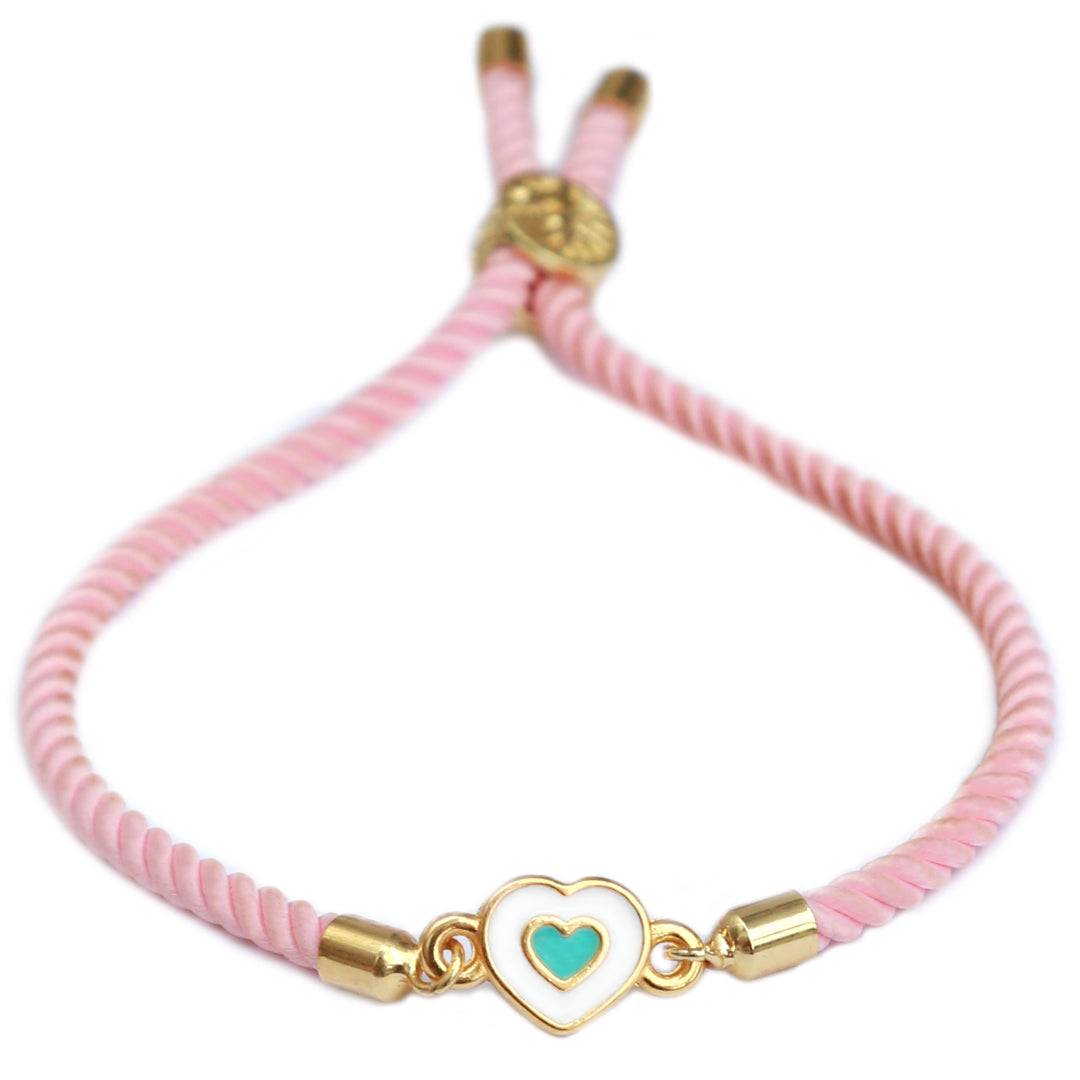 Joli bracelet rose avec une petite breloque coeur ! Vous pouvez facilement faire glisser le bracelet à la taille souhaitée.