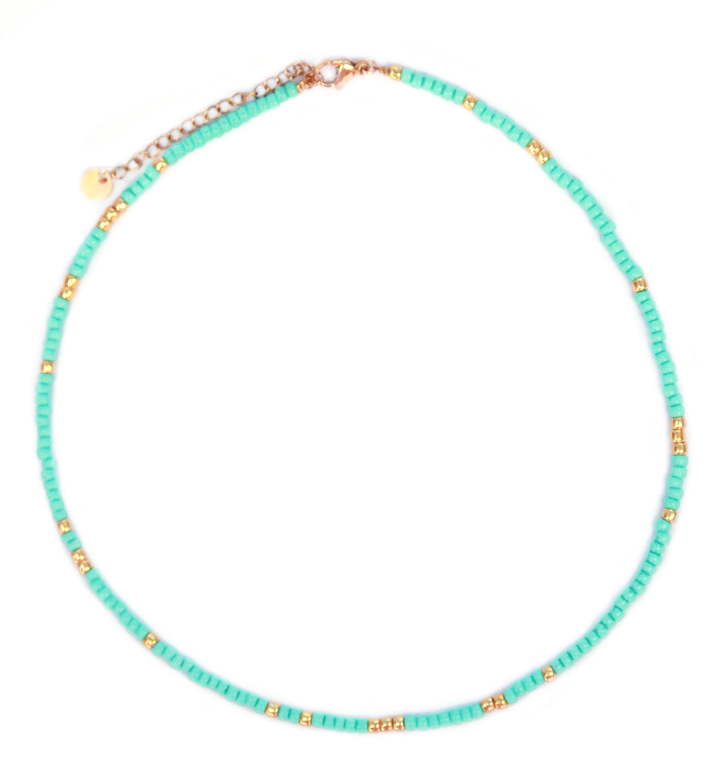 Joli collier composé de perles miyuki roses et dorées.Longueur : 35 + 5 cm de chaîne d'extension...